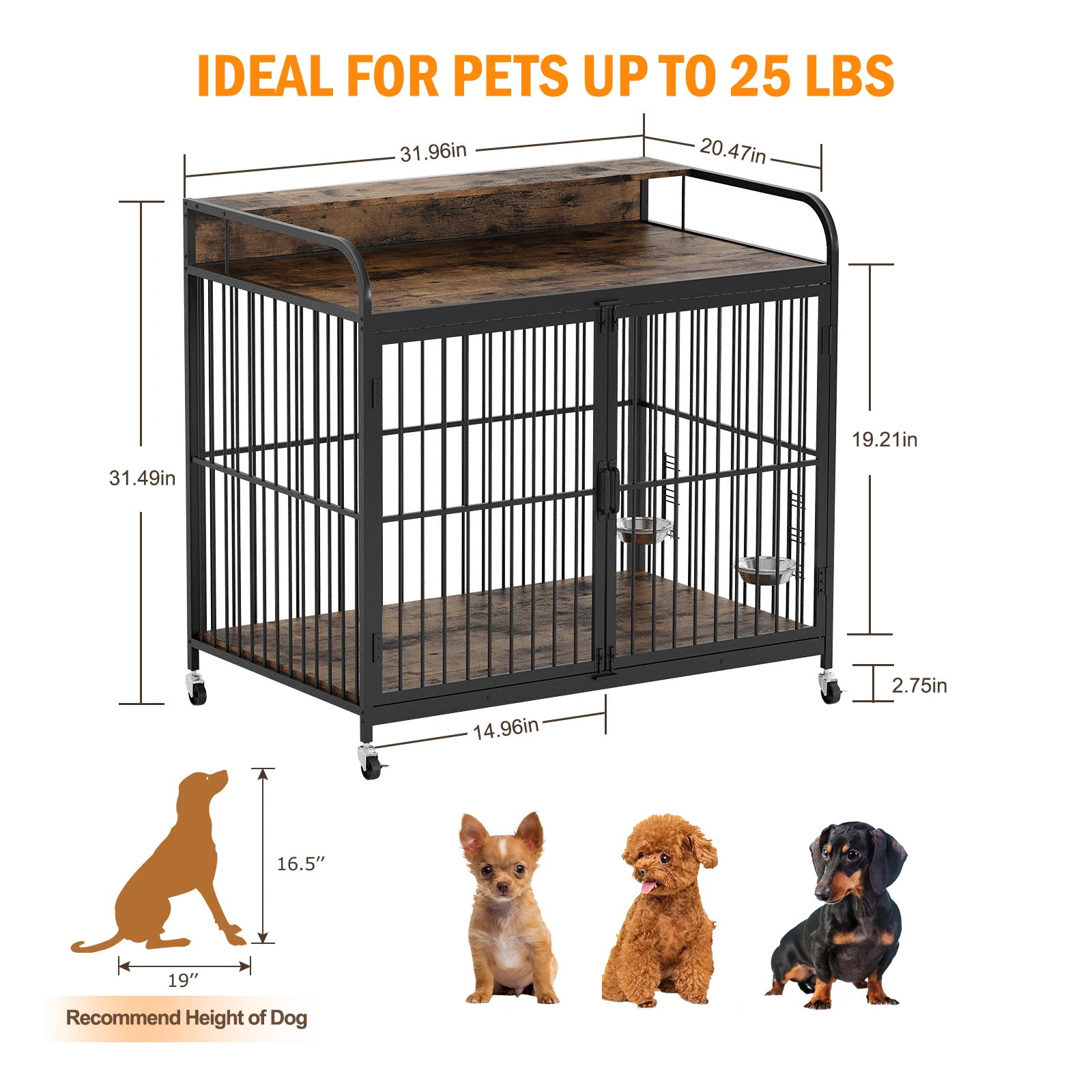 Dimensions of Dog Crate Furnitute: This dog crate measures 39.8"L x 22.5"W x 38.6"H, perfect for medium dogs, French Bulldog /Corgi / Pit Bull/Dachshund /Caim Terier/American Pit Bull